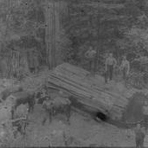 Photo--black and white: Logging operation of Charles E. Fuller in Occidental 1900. Shows: John Clark; Frank Blanchard; Ben Brians; Bill Howard; Charles Fuller.