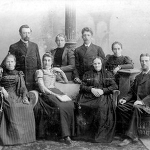 A photograph of the leaders of Saratov's community of Evangelical Christians along with their wives, 1887. [Description English/roman)]