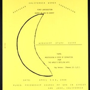 Northern California women convention, "Maintaining a state of separation from the world's defiling ways", workshop study guide, Friendship Church of God in Christ, San Jose, California, 1984 April 5-6. [Description English/roman)]