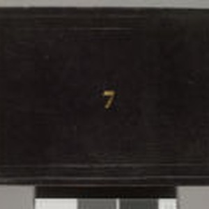 Album is bound in textured black material. The number "7" is embossed in gold in the center of the cover. Contains photographs taken by Jack London while on assignment to cover the Russo-Japanese War. Heavy wear on spine. Black coating on spine is missing.