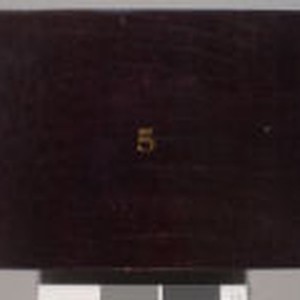 Album is bound in black faux alligator skin. The number "5" is embossed on the cover in gold. Contains photographs taken by Jack London while on assignment to cover the Russo-Japanese War. Some wear around corners and top of spine. Sticker upper left corner of back cover: "OA 49865."