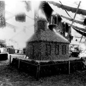 Photo--black and white: 1939 Gravenstein Apple Show display of Ft. Ross made of apples.