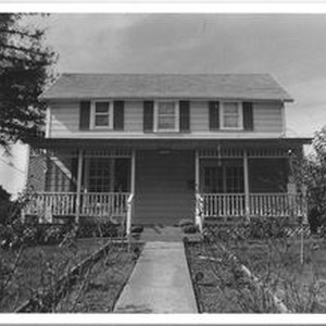 Photo, black and white: Sebastopol house at 720 North Main Street a Greek Revival built in 1870. House photographed in 1993 by Evelyn McClure for her book "Sebastopol, California : History, Homes and People."