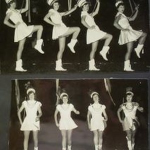 Photo--Black and white: Analy High School Football fall1952. Two photo of the four Analy marching majorettes