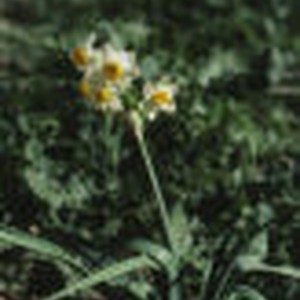 Some white flowers with bright yellow middles branch from dark green stem at Eldoradoville Picnic Area.