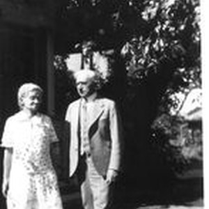 Photo--black and white: Mr. And Mrs. Chester Myers--probably at the house of their son Charles R. Myers in Sebastopol.