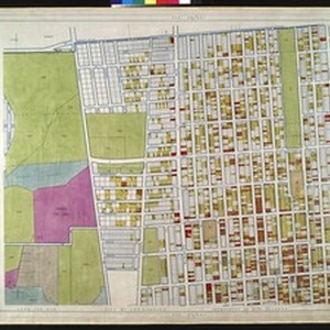 WPA Land use survey map for the City of Los Angeles, book 10 (Shoestring Addition to San Pedro District), sheet 15. Includes: [Title page and] legend [for Book] no. X Composite index to Land use map books [for Book 10] Index to Book no. 10. Land use survey - City of Los Angeles. Department of City Planning. These maps were prepared with the assistance of the Works Progress Administration project no. 665-07-G-226 through 1939 to 1940. The land use data contained herein was compiled from a survey made with the assistance of the Civil Works Administration project no. 642, State Emergency Relief Administration project nos. 1-F2-318 and 1-F2-318A and Works Progress Administration project nos. 65-3-4377, 1101-2011 and 465-03-3-106. This survey functioned from Dec. 18, 1933 to May 8, 1939 and covers approximately 460 square miles within the boundary of the City of Los Angeles. It includes 347 colored drawings bound in 10 volumes of which this is no. X. The land use survey was supervised by the Zoning Engineer. The land use maps were supervised by the Illustrative Planning Engineer for the Sponsoring Department.