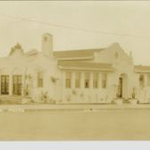 Postcard--photo--black and white: Chamber of Commerce building in Sebastopol built in1923 on the corners of Petaluma Avenue and Sebastopol Avenue. This is a Borba Photo--taken by William S. (Bill) Borba a local historian.