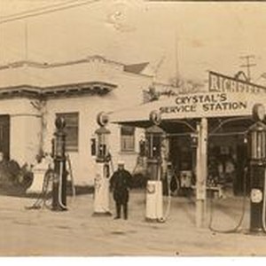 Photo--black and white: Crystal's Service Station on east side of Main Street in Sebastopol between Wilton and McKinley. Richfield Gasoline.