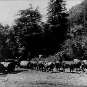Photo--black and white: Logging crew with a team of oxen 1897 , Sonoma County.