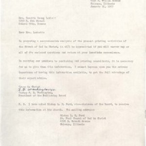 L. H. Ford, letter, 1957 Jan. 21, to Rose Lockett regarding printing activities. [Description English/roman)]