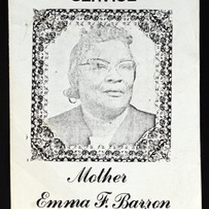 Birthday service program, Emma F. Barron, Lighthouse Church of God in Christ, 1985 October 5. [Description English/roman)]