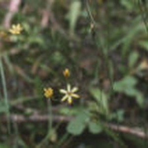 Yellow flowers in various states of bloom, thin petals at North Fork Kings River chuts area at 9000 feet elevation. Slide mount references Triteleia anilina.