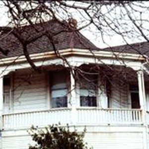 Slide, color transparency: Queen Anne house at 722 Morgan Street, Santa Rosa, California, photographed in 1976.722 Morgan Street was built around the turn of the century and is a Queen Anne cottage with a high basement giving it a story and a half appearance. The house is part of a group of Queen Anne and Colonial Revival houses and cottages built primarily between 1894 and 1907 in the St. Rose Historical District and was photographed in 1976. (Source: St. Rose Historic District -- walking tour brochure: http://ci.santa-rosa.ca.us/doclib/Documents/StRoseWalkingTour.pdf)
