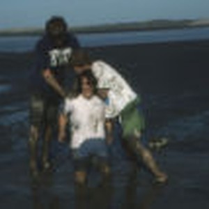 Students have a good time looking for clams in the mud at the Morro Bay tidal flats.