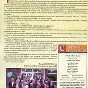 Cuvantul Adevarului este publicația periodica oficiala a Bisericii Penticostale din Romania incepand din anul 1990 pana in prezent. [Description (original non-English/roman language/script)] The Word of Truth is the periodical, official publication of the Romanian Pentecostal Church beginning from 1990 to present. [Description English/roman)]