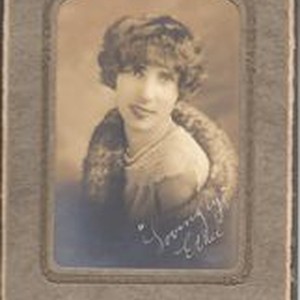 Photo--sepia, in studio folder: Ethel Sharp circa 1930. Ethel as bobbed hair and is wearing a fur wrap. Thompson, Santa Rosa.