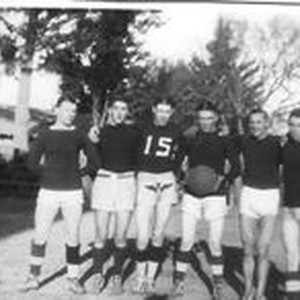 Photo--black and white: Seven unidentified Analy High School basketball athletes in 1924.