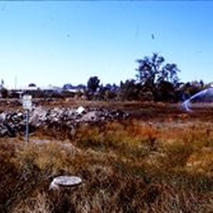 Slide, color transparency: Cannery in Sebastopol far left and the spraying of waste water from the cannery. 1970