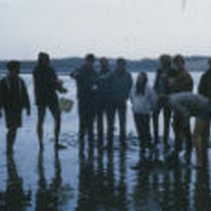 A large group of students show off in the mud after a long day of digging for clams, in the tidal flats at Morro Bay.