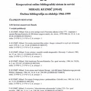 A list of written and translated works by Mihael Kuzmič from the year 1966 to 1999. [Description English/roman)] Popis napisanih i prevedenih objavljenih djela Mihaela Kuzmiča u razdoblju od 1966. do 1999. godine. [Description (original non-English/roman language/script)]