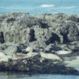 Seals resting on the sands and rocks of Strawberry Hill.