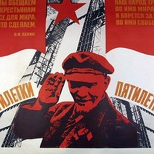 Soviet poster. Caption reads, "Nashi piatiletki -- piatiletki mira! / Наши пятилетки — пятилетки мира!", meaning, "Our five-year-plans are the plans of peace!". [Description English/roman)]