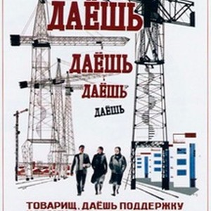 A posted dedicated to a new magazine called "Daesh' " (Let there be...). Captions read, "Daesh', daesh', daesh', daesh'. Tovarishch, daesh' podderzhku novomu rabochemu zhurnalu Daesh' / Tоварищ, даёшь поддержку новому рабочему журналу Даёшь", meaning, "Comrade, give your support to the new magazine for workers Daesh' ". [Description English/roman)]