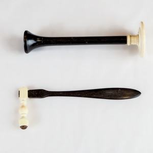 Scope/Content: 19th-century straight stethoscope and percussion hammer (also called a reflex hammer); ebony and ivory.