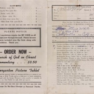 Order Form (Lewis White) requesting Sunday School Literature from D.J. Young Publishing Company, 1970 July 14. [Description English/roman)]