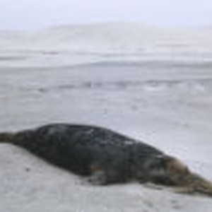 A dead baby whale lying in the sands of Scammon's Lagoon.