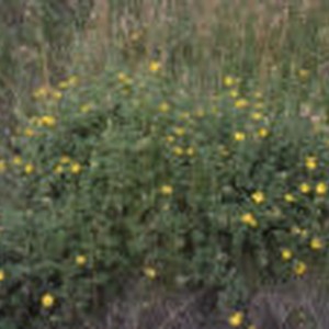 Shrub with yellow flowers and green leaves on a grassy slope at the Head of Dean campsite, elevation 8,840 feet.