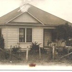 Photo--black and white: The J.F. Triggs house in Graton about 1911 or 12. The Triggs children on the front steps: back row: Delbert and Ruth, front Glenn (Dutch) and Arthur Triggs.