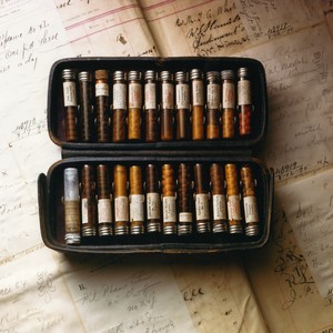 Scope/Content: Photographic print of a leather medicine case (late 19th-early 20th century) with pills in containers, on top of prescription forms dated 1890; photograph perhaps taken for a UCSF Archives calendar.