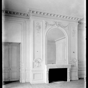 View shows the fireplace of the small drawing room. MS note on verso reads "HEH residence interior."