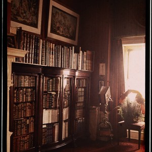 Image / Detail of bookcases in the study of Henry E. Huntington’s New York …