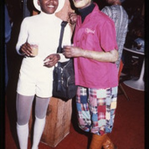 Image from a collection of 35mm photographic slides depicting nightlife events, circa 1970-1977, including images of a Sylvester concert and what may be Halloween 1977. The images predominantly depict Black performers and attendees, including people in costumes and drag. These slides were salvaged by the donor, Deborah Deegan.