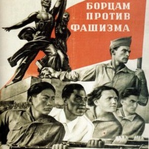 An anti-fascist poster. Caption on top reads, "Privet bortsam protiv fashizma / Привет борцам против фашизма", meaning, "Our regards to the fighters against fascism". [Description English/roman)]