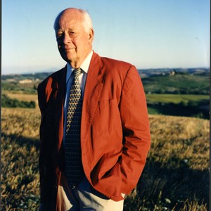 Color photo of Charles Handy outside standing in rolling meadows, taken by Elizabeth Handy. Charles is pictured standing with his left hand in his pockets, looking directly into the camera lens. The photo was captured in daylight.