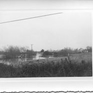 Print--black and white: 1951 flood in the Sebastopol Laguna area. Floodwaters cover the Laguna and pasture land.