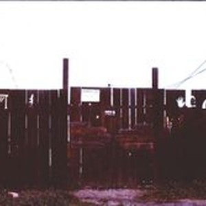 Slides, color transparency: Gate and fence behind Green Fingers shop in Sebastopol, 1977.