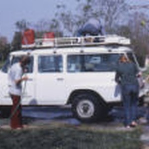 John Vallee, Chip Hogue, Allison Johnson, Cathy Burnell, Ian, and David cleaning the Travelall.
