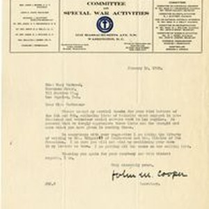 Rev. John M. Cooper letter to Mary J. Workman, Jan 19, 1920
