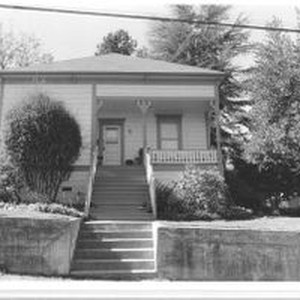 Photo, black and white: Sebastopol house at 294 Jesse Street a Hip roof cottage built in 1905 in the Brittian Addition. House photographed in 1993 by Evelyn McClure for her book "Sebastopol, California : History, Homes and People."