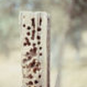 Image / Woodpecker holes in fence post