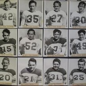 Photo--Black and white: Analy High School Football team individual photos, 1951. The players in all white jerseys are the reserve team--others are first string. Top row L-R: Halloway, Gene (42) Listoe, Jim (35) Clark, Dave (27) Webb, Jake (30). Middle: Johnston, Harry (15) Kenyon, Jim (52) Tillinghast, Jim (7) Endlich, Ernie (49). Bottom: Sommers, Ross (20) Shone, Dick (21) Powers, Warren (31) Hambrook, Phil (25).