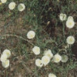 A close-up of the white flowers of island false bindweed growing in Johnson's Pasture in Claremont, California.