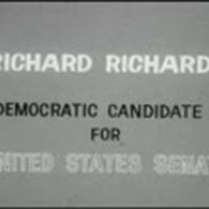 Richard Richards, a Democrat representing Los Angeles in the California Senate, speaks to an audience of Pacific Gas and Electric employees during his campaign for the US Senate. James S. Moulton, vice president and executive engineer, Pacific Gas and Electric Company, introduces Richards. Pacific Gas and Electric Company (PG&E) sponsored this nonpartisan series of political forums for the thousands of PG&E employees in northern and central California. The series featured candidates for statewide office in California and discussions of leading issues, and was produced in cooperation with the Pacific Service Employees Association.Additional Descriptive Notes: Sequence: Slates begin (00:17), camera pans audience, guests enter on stage and are seated (00:55), Moulton begins speaking, introduces guests (01:29), Moulton introduces Richards (04:34), Richards begins speaking (07:16), Moulton thanks Richards on the conclusion of his speech (33:46), first question from audience (34:30), Moulton thanks Richards and the audience (46:16), audience exits (47:30), closing credits (48:11).