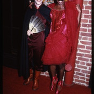 Image from a collection of 35mm photographic slides depicting nightlife events, circa 1970-1977, including images of a Sylvester concert and what may be Halloween 1977. The images predominantly depict Black performers and attendees, including people in costumes and drag. These slides were salvaged by the donor, Deborah Deegan.