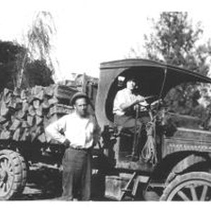 Photo--black and white: William J. Thorpe and his wife Mandy (Amanda Yarbrough Thorpe, (born 2/1/1897 in Crescent City, CA.) Photo taken early 1920's about the time they built a double circular, steam powered sawmill on the old Buckhorn Ranch. Years before it was a stage coach stop. It is & has been for years owned by Andrew Jackson Blaney. The Atterbury truck filled with firwood, probably for apple driers. Believe this wood cut on Coleman Ranch, down on Finley Creek slope not far from South boundary, but on a little ridge near top. I saw where they were cutting one time while hunting with Toto hound, for varmints one winter. It was learned from the Thorpes that this shot was taken off a wide curve on Coleman Valley Road west of Occidental, but a few feet from corner of old Blaney Ranch southwest off road. Ugine (Eugene?) Meeker lived here for some time in fact he built a fairly long chicken house here to house Leghorn chickens, so in the egg business for time, but why he went into chicken business, I'll never know. My dad (Wade) and I helped for two or three days digging out foundation for chicken house, that I remember!. Handwritten information on verso by Ralph Sturgeon.